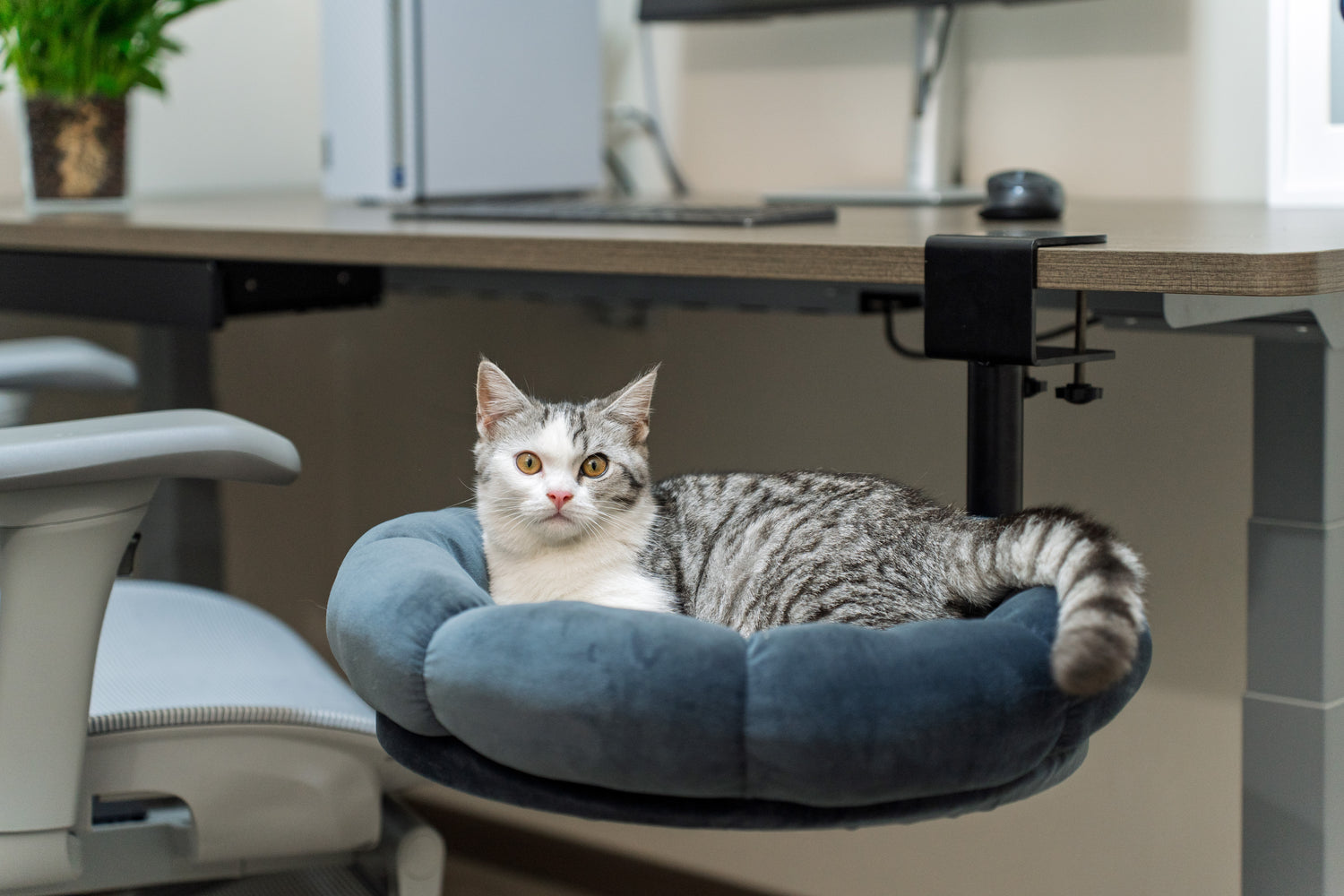 Deskpurrch™ is designed for cat lovers who want their furry companions close without sacrificing their workspace. This desk-attachable cat bed creates a cozy perch for your cat to relax, keeping your workspace neat and focused.